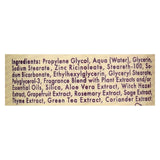 ingredients : propylene glycol;aqua;water;glycerin;sodium stearate;zinc ricinoleate;steareth-100;sodium bicarbonate;ethylhexylglycerin;glyceryl stearate;polyglycerol-3;fragrance blend with plant extracts and/or essential oils;silica;aloe vera extract;witch hazel extract;grapefruit extract;rosemary extract;sage extract;thyme extract;green tea extract;coriander extract