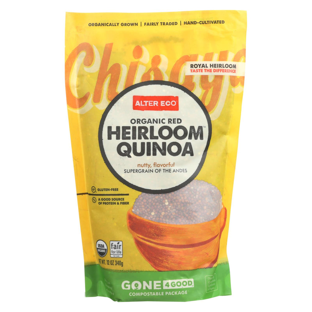 Alter eco's organic red heirloom quinoa is complex and protein packed. It's a great substitute for brown rice. Each 12 oz. Package of organic red heirloom quinoa has 190 calories per serving. Our quinoa is free of gmos and is loaded with whole grain goodness. We harvest it organically using environmentally friendly methods and it's kosher with certified fair trade ingredients. Just one spoonful, and you’ll see why our quinoa should be the only quinoa that graces your plate. Nourishing foodie, farmer and field through sustainable foods from around the world.
