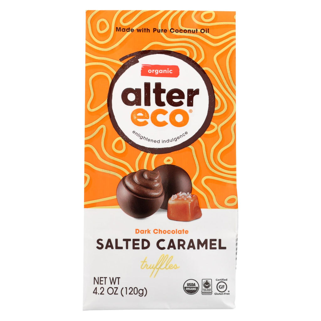 Alter eco's salted caramel truffles are made with pure coconut oil. Malty ecuadorian cacao and nourishing coconut oil are stirred with a sprinkling of fleur de sel de guerande for a creamy, deep caramel bite. Our truffles are verified non-gmo and certified fair trade using organic ingredients. It's vegan, soy free, and has 8 simple ingredients using 58% cocoa. Each package has 3 servings (3 pieces) with 220 calories each. Nourishing foodie, farmer and field through sustainable foods from around the world.