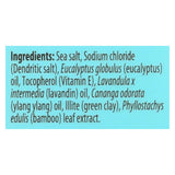 ingredients : sea salt;sodium chloride;dendritic salt;eucalyptus globulus;eucalyptus;oil;tocopherol;vitamin e;lavandula x intermedia;lavandin;cananga odorata;ylang ylang;illite;green clay;phyllostachys edulis;bamboo;leaf extract