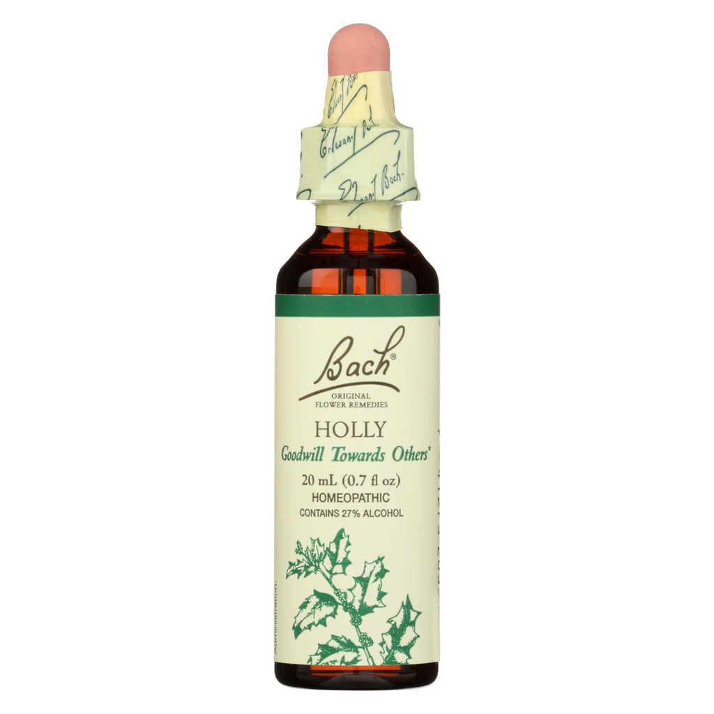 Bach holly homeopathic original flower remedy promotes goodwill towards others. Take a dose of this formula when you're feeling anxious or nervous for a calming effect that helps relieve tension. This 20 ml. Bottle contains an all-natural formula derived from that holly plant, which is believed to remedy negative, aggressive feelings directed towards others.