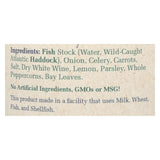 ingredients : fish stock;water;wild-caught atlantic haddock;onion;celery;carrots;salt;dry white wine;lemon;parsley;whole peppercorns;bay leaves