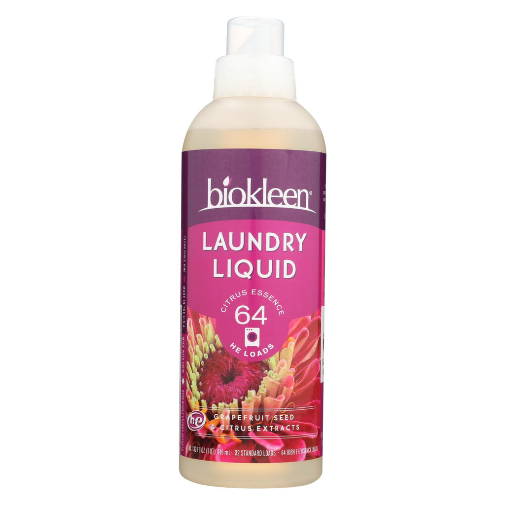 Biokleen citrus essence laundry liquid contains 32 fl. Oz. And is 3x concentrated to provide 64 he loads of plant-based citrus cleaning power. With grapefruit seed and citrus extracts, this liquid gets clothes exceptionally clean and odor-free in just one wash. Biokleen has a guiding commitment to people, pets and our planet--harnessing the power of nature to produce plant and mineral based cleaners that work. We are a family owned, proud u.s. Manufacturer that doesn’t test on animals. We also participate 100% in energy and water offsets. Biokleen is tough on dirt, gentler on the earth. See the label for allergens and warnings.