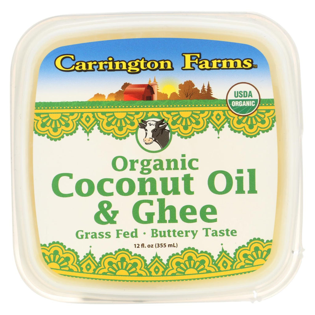 Carrington farms organic coconut oil & ghee is made with only unrefined extra virgin coconut oil and clarified butter for a preservative-free ingredient and spread with a buttery flavor. Sourced from the philippines, india and sri lanka and packaged in the united states, it comes in a 12 fl. Oz. Plastic tub.
