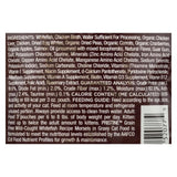 ingredients : whitefish;chicken broth;water sufficient for processing;organic chicken liver;chicken;dried egg whites;organic dried peas;organic carrots;organic cranberries;organic apples;salmon oil;preserved with mixed tocopherols;natural flavor;guar gum;salt;potassium chloride;taurine;minerals;zinc amino acid chelate;iron amino acid chelate;copper amino acid chelate;manganese amino acid chelate;sodium selenite;potassium iodide;sodium carbonate;choline chloride;vitamins;thiamine mononitrate;vitamin e suppleme