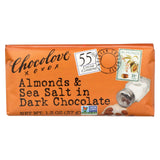 Chocolove almonds and sea salt in dark chocolate bar is a 1.3 oz. Bar with dark semisweet chocolate, whole dry roasted almonds and sea salt. At first bite, crunchy almonds release their flavor in a swirl with chocolate. The sea salt crystals continually reset your sweet taste buds and make a tantalizing taste combination that keeps you wanting more. Our chocolate is made with cocoa certified by imo as for life, which means it was farmed in a socially responsible and ethical manner. All of the cocoa bean derived ingredients in this chocolate are certified for life. See the nutrition facts panel for allergens.