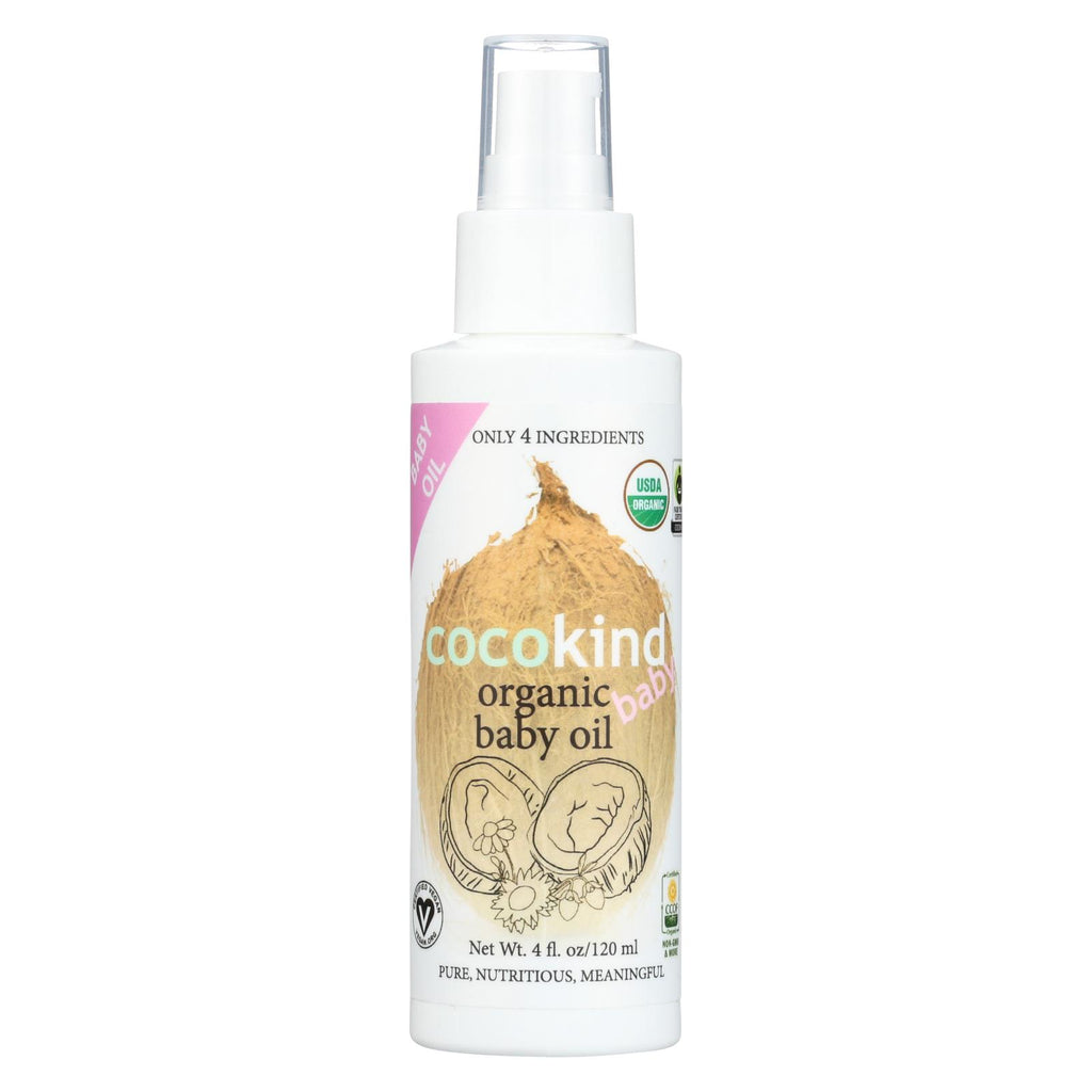 Cocokind baby oil comes in a 4 fl. Oz. Bottle filled with four simple ingredients for baby soft skin. We use organic virgin coconut oil, organic jojoba seed oil, organic sunflower seed oil and organic chamomile flower in our special blend. Safe for babies and their parents, our oil contains over 24% certified fair-trade ingredients.