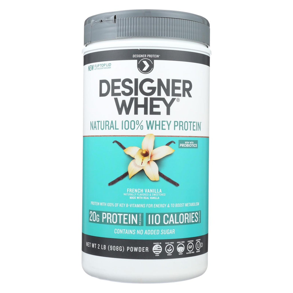 Made with natural 100% premium whey and naturally flavored and sweetened for only 100 good-for-you calories per serving, designer whey protein powder in french vanilla is irresistibly delicious. No wonder it's our most popular flavor. It's also specially formulated to help you get more out of your workouts. The secret is the ingenious combination of l-glutamine to keep muscles fueled, b-vitamins, and full-spectrum whey peptides to help muscles recover. Now, you can get ready for tomorrow and savor every moment along the way.