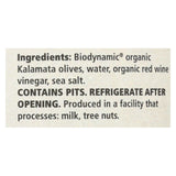 ingredients : biodynamic® organic kalamata olives;water;organic red wine vinegar;sea salt