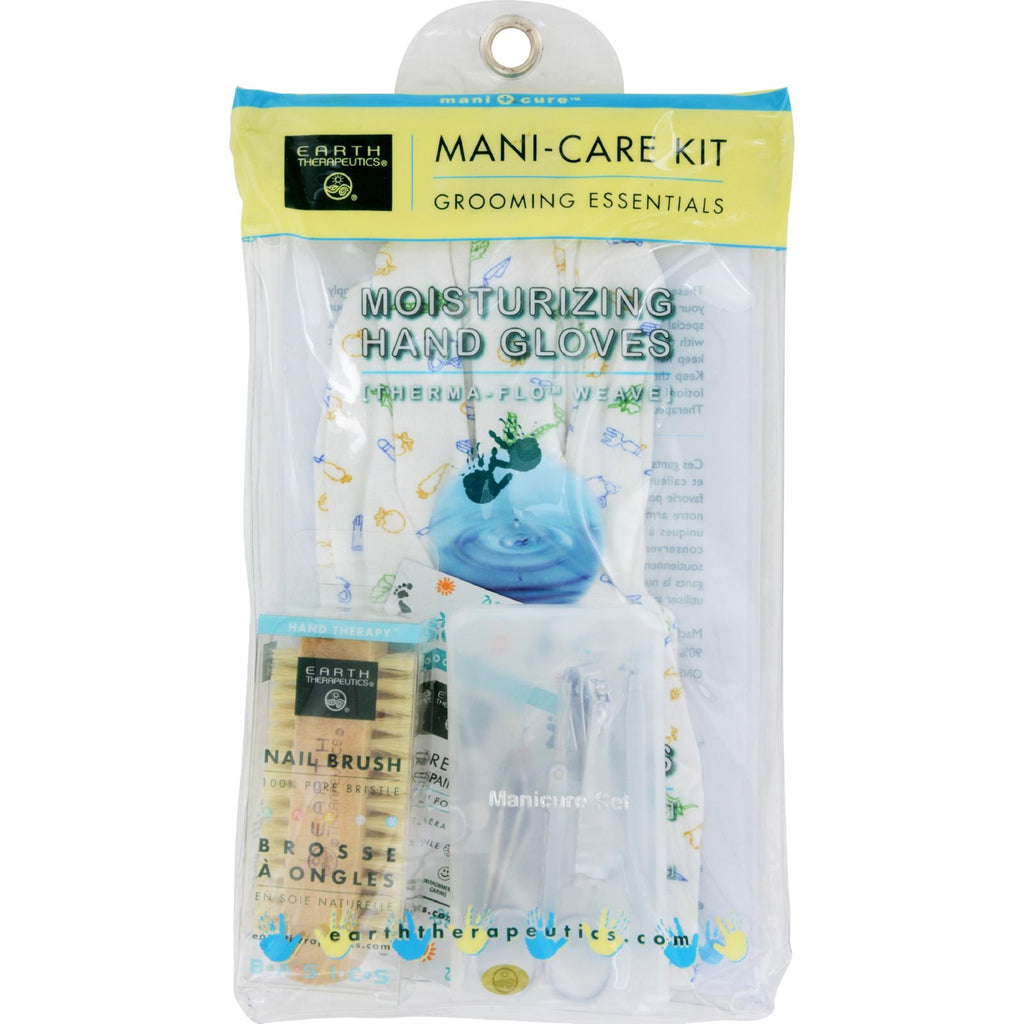 Earth therapeutics mani-care kit description: professional hand therapy indulge your hard-working hands with our most advanced therapies for hands and nails. Moisturizing hand gloves seal in the nourishing ingredients of our emollient-rich earth therapeutics lotion (sample included), working synergistically with your body temperature to hydrate and repair dry, cracked hands overnight. The natural lotion remedy absorbs deep into dermal layers to nourish and fortify. Nail brush with natural bristles cleans under nails and buffs nail bed to a healthy shine. For precision grooming, the manicure set contains quality, high grade cuticle trimmer, nail clipper, tweezers, scissors in a compact, travel-friendly case. These professional standard implements have been rigorously tested for exacting accuracy. Disclaimer these statements have not been evaluated by the fda. These products are not intended to diagnose, treat, cure, or prevent any disease.