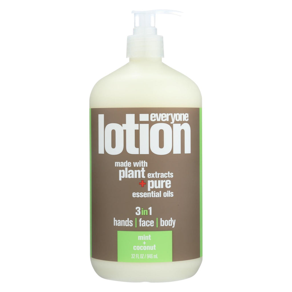 Everyone lotion, mint coconut is never tested on animals. This product is a great 3-in-one option for your next moisturizing product and can be used to cover your hands, face, and body. Everyone lotion, mint coconut is expertly crafted from non-gmo and organic plant extracts and pure essential oils to soothe and soften your skin. This product is certified gluten-free and comes packaged for your convenience in a recyclable, plastic bottle for easy disposal and contains 32 fl. Oz. Of product. Everyone loves soft skin.