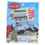 Field trip beef jerky, original is made with grass-fed beef and has a natural smoke flavor added. This original jerky is made with hickory smoke flavor and a black pepper and brown sugar marinade. This premium top round beef is gluten-free with no artificial ingredients or preservatives. Each pouch of field trip beef jerky, original contains 2.2 oz. Of product.