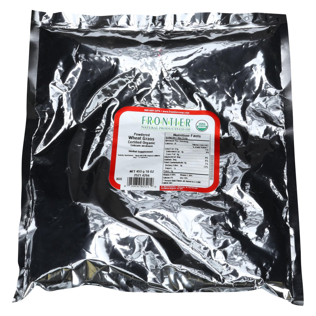 Frontier natural products co-op certified organic powdered wheat grass herbal supplement provides concentrated amounts of chlorophyll and several essential nutrients in an easy-to-handle format. We encourage you to add our wheat grass to smoothies, healthy fruit juices or water to get extra fiber, vitamin a, vitamin c and iron in your meal. This 16 oz. Sealed bag contains approximately 45 servings at 1 tbsp. Each.