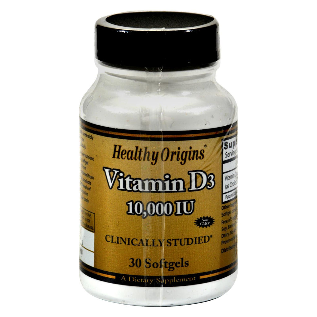 Healthy origins vitamin d3 description: clinical strength the two forms of vitamin d supplements are d2 and the more potent d3. Health origins vitamin d3 10000 is key nutrient manufactured in a highly absorbable liquid softgel from. Vitamin d3 is synthesized in the body from sunlight and only a small amount can be obtained from food. The winter season and most all sunblock products inhibit the body’s ability to produce optimal levels of vitamin d. As a result vitamin d3 supplementation becomes even more necessary to ensure your body receives an adequate supply. Free of sugar, salt, starch, yeast, wheat, gluten, corn, soy, barley, fish, shellfish, nuts, tree nuts, eggs and dairy products. Disclaimer these statements have not been evaluated by the fda. These products are not intended to diagnose, treat, cure, or prevent any disease.