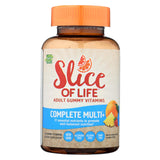 Slice of life complete multi-vitamin is a dietary supplement. This product is gluten-free and specifically formulated for adults to promote overall health. Slice of life complete multi-vitamin is fruit-flavored and does not contain artificial colors, flavors, or preservatives. This product is packaged for your convenience and contains 60 gummies of product.