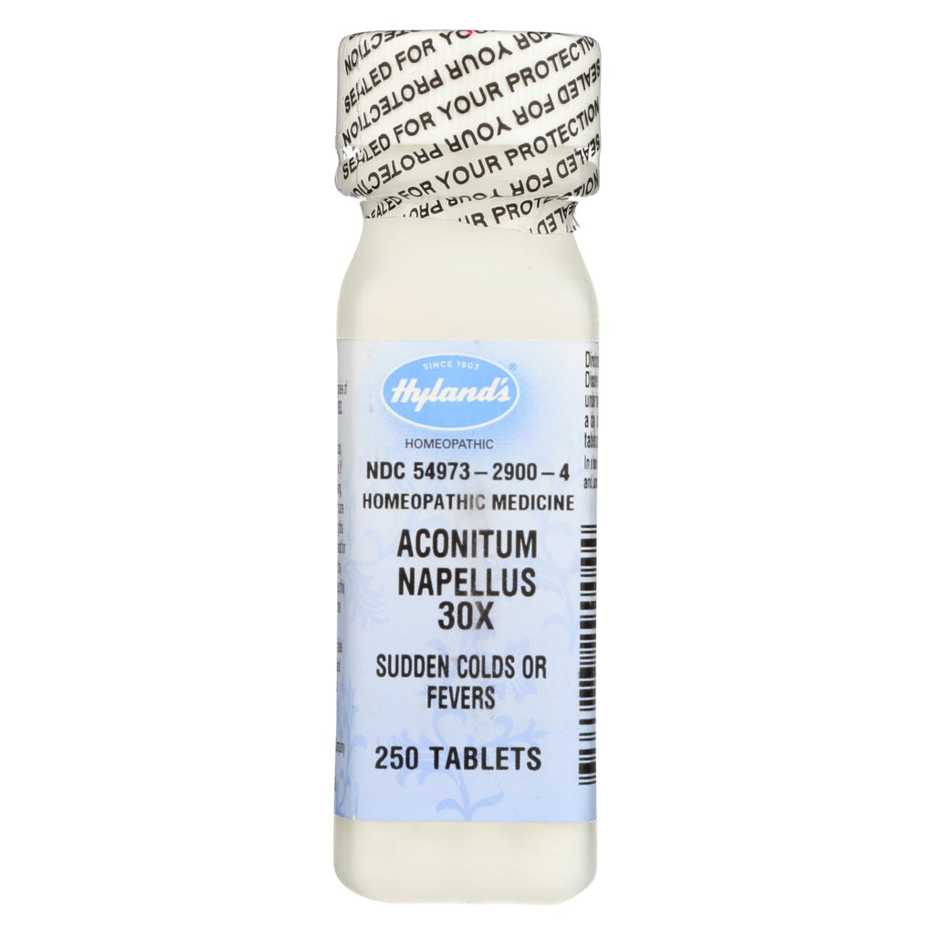 Hyland's aconitum napellus 30x homeopathic medicine is believed to help reduce the symptoms of sudden colds or fevers. Available in a 250 tablet bottle, this homeopathic medicine meets the standards of the homeopathic pharmacopoeia of the united states. Place these tablets under the tongue for quick and easy absorption into the bloodstream.