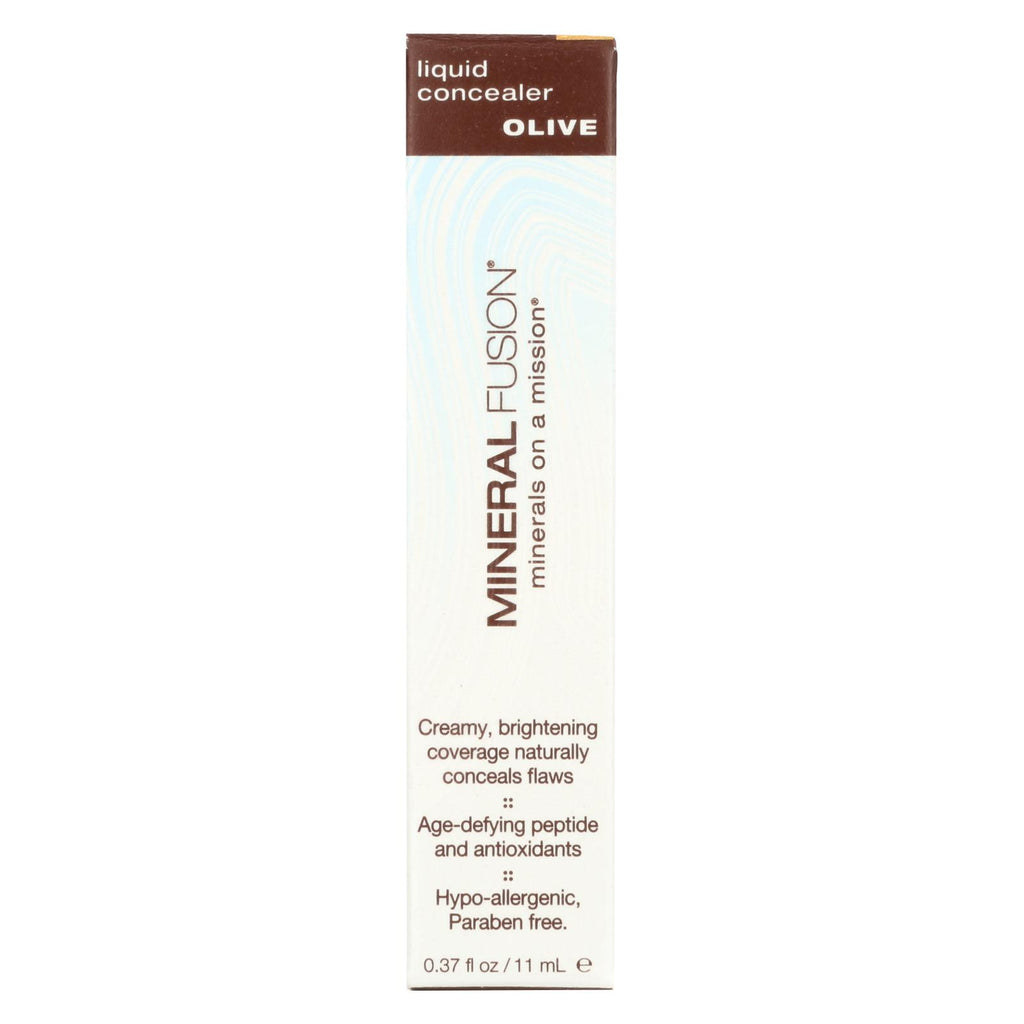 Mineral fusion liquid concealer in olive uses light-reflecting minerals that blend perfectly with your skin to provide flawless coverage. We formulate this product using age-defying antioxidants to help keep your skin youthful and a collagen-boosting peptide to firm your skin by combating wrinkles. This creamy, brightening liquid concealer comes in a 0.37 fl. Oz. Bottle and is ideal for masking under-eye circles and other hyper-pigmentation.