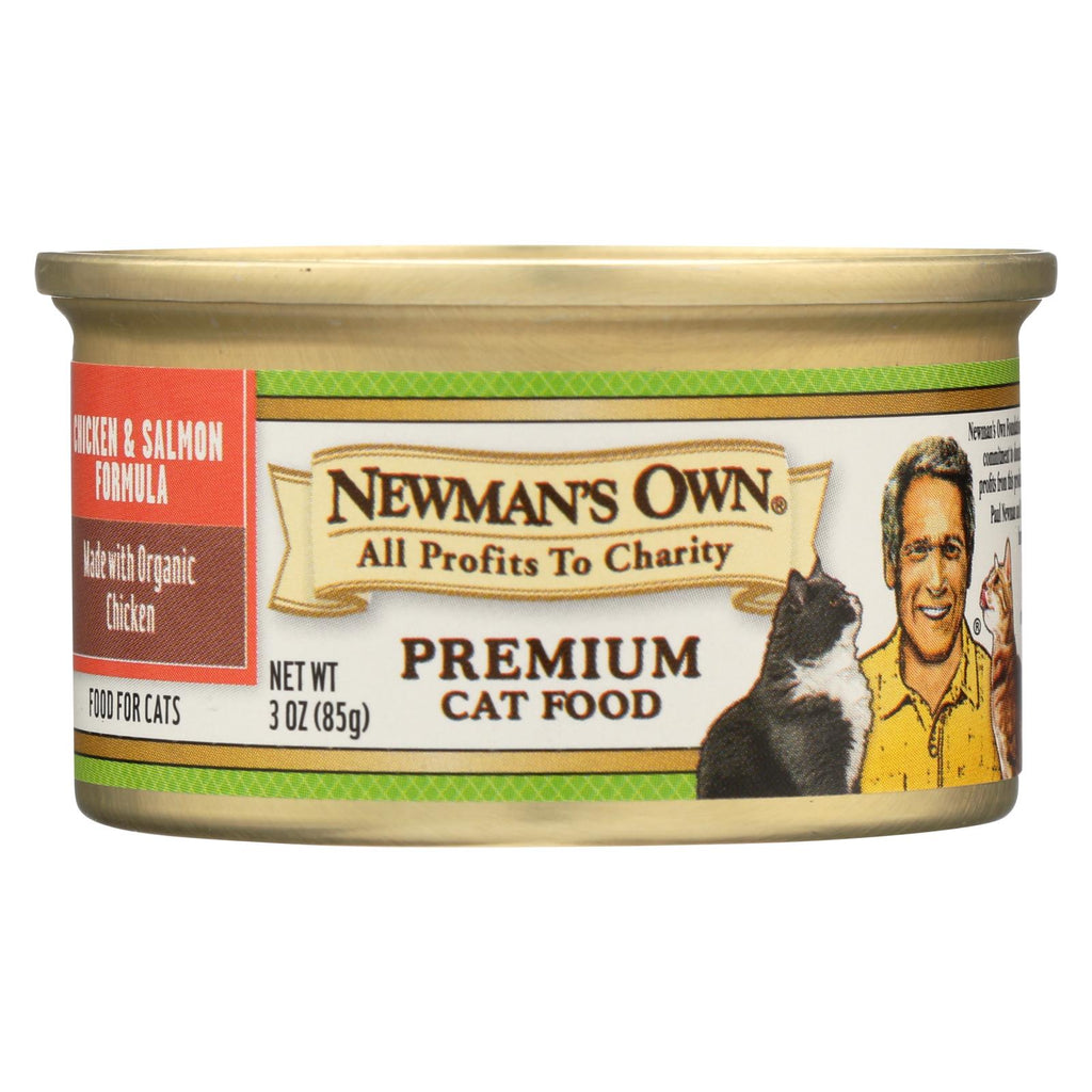 Newman’s own canned cat formula, organic chicken & salmon is a healthy and delicious food option for your feline friends. Made primarily with natural ingredients, this wet cat food is largely free of unnatural and unnecessary additives. This product is organic. All the profits made from newman's own products are donated to charity. Each can of newman’s own canned cat formula, organic chicken & salmon weighs 3 oz. Refrigerate after opening.