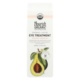 Nourish organic eye treatment, normal to dry skin provides rich hydration to the delicate skin around the eyes. Its unique cooling applicator also addresses under-eye puffiness for a more youthful appearance. This powerful combination will leave your eyes looking brighter, smoother and younger looking. Avocado oil restores and protects skin while helping retain clarity and brightness. Moroccan argan oil, which is packed with restorative omega fatty acids, intensely hydrates and replenishes while shea butter deeply moisturizes and softens skin. This product is 100% natural, is usda certified organic and comes in a 0.5 oz. Box.