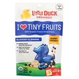 Little duck organics tiny fruits blueberry & banana freeze dried snacks deliver up to 1/2 lb. Of fruit in every pouch, making it easy to help your little ones consume their recommended portion of fruit each day. The freeze-drying process preserves the natural vitamins, enzymes and nutrients in the fruit remain for a healthy way to keep your kids satisfied. Small pieces make the snacks easy for little hands to grab, and the 0.75 oz. Bag of three servings allows you to easily toss them in your bag for on-the-go snacking.