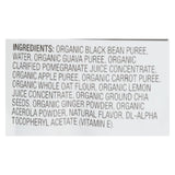 ingredients : organic black bean puree;water;organic guava puree;organic clarified pomegranate juice concentrate;organic apple puree;organic carrot puree;organic whole oat flour;organic lemon juice concentrate;organic ground chia seeds;organic ginger powder;organic acerola powder;natural flavor;dl-alpha tocopheryl acetate;vitamine
