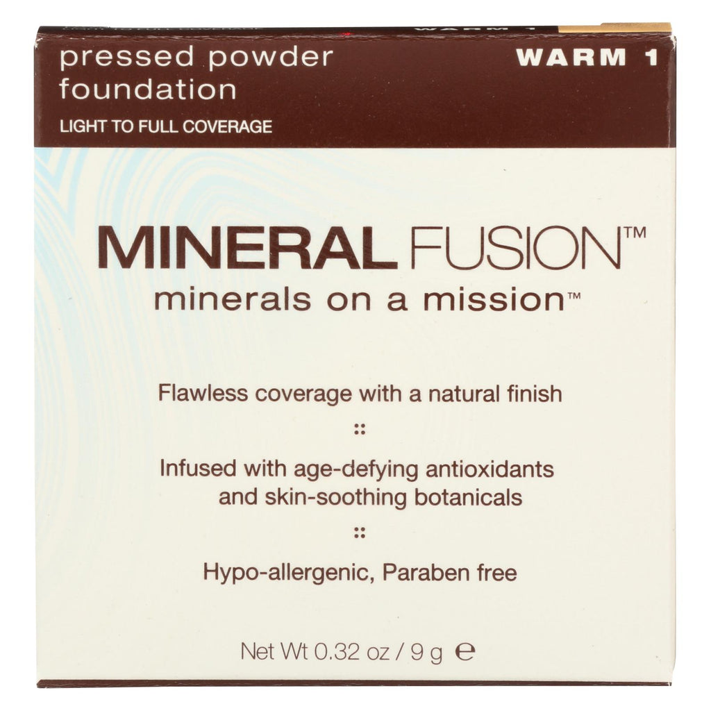 Mineral fusion warm 1 pressed powder foundation delivers triple-milled natural minerals to promote an even skin tone and help improve facial appearance. Apply this weightless foundation with a fluffy kabuki brush for all-day coverage that's actually good for your skin. This age-defying pressed powder is formulated with all natural ingredients, including licorice root, pomegranate, sea kelp and cucumber. One compact contains 0.32 oz. Of mineral fusion warm 1 pressed powder foundation.