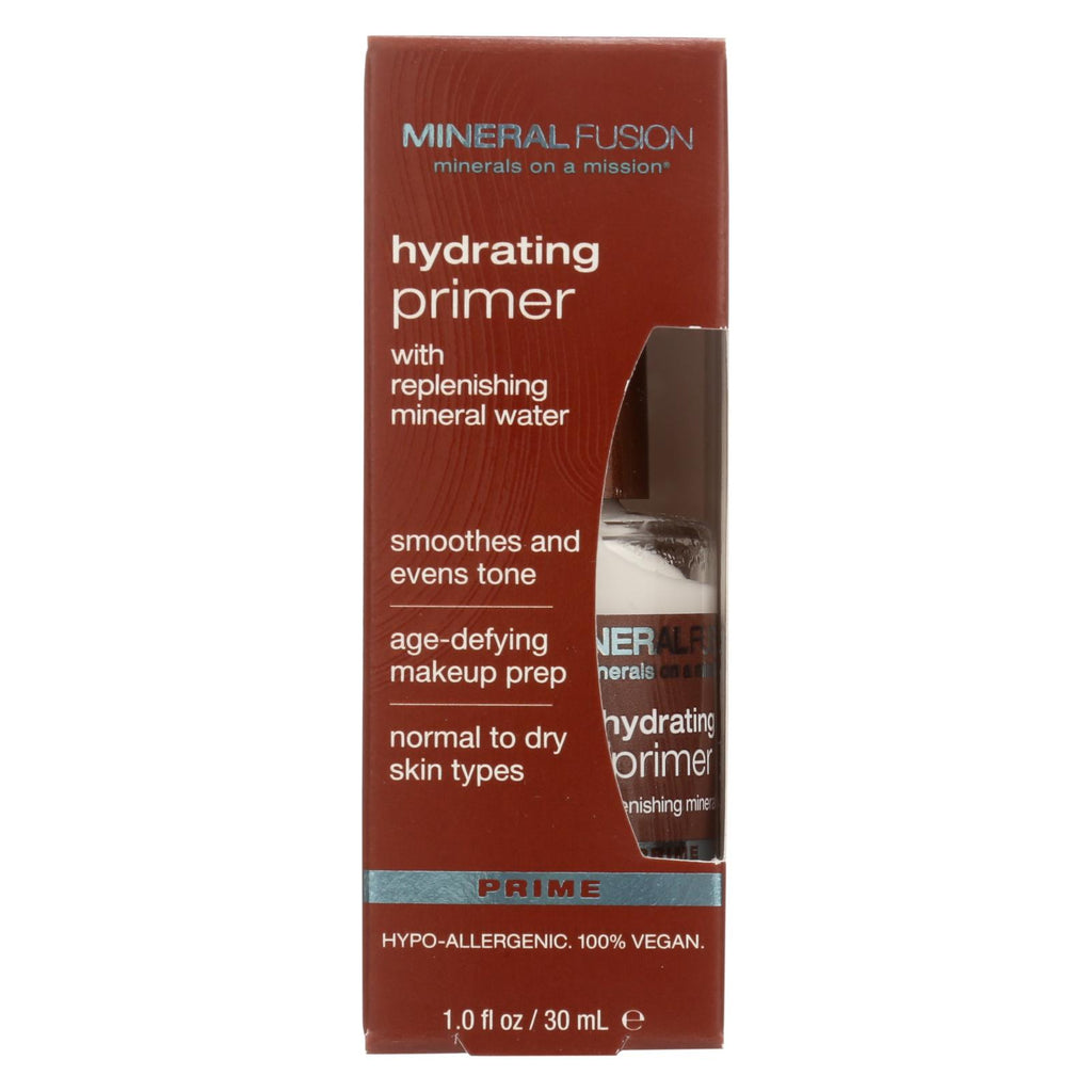 Mineral fusion hydrating primer is a primer designed to smooth and even skin tone with replenishing mineral water that softens and hydrates. Each 1 fl. Oz. Box is gluten-free, vegan and cruelty-free. Our hydrating primer contains aloe, lavender and chamomile with no artificial colors, parabens or phthalates.