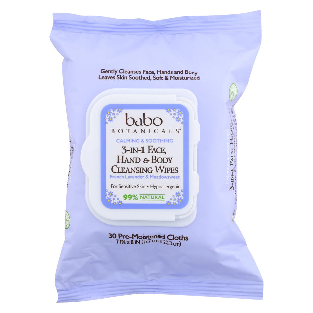 Babo Botanicals - Hand And Body Cleansing Wipes - Lavender And Meadowsweet - Case Of 4 - 30 Count