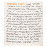 ingredients : inci;: aqua;hamamelis virginiena;witch hazel;extract;glycerin;chamomilla recutita;matricaria;flower extract;cucumis sativus;cucumber;fruit extract;equisetum arvense;horsetail;leaf extract;macrocystis pyrifera;kelp;citrus grandis;grapefruit;seed extract;rosmarinus officinalis;rosemary;salvia officinalis;sage;bixa orellana;annatto;ascorbic acid;allantoin;panthenol;apple cider vinegar;polysorbate 20;mentha piperita;peppermint;sodium pca;camphor;cellulose gum;sulfur;sodium hyaluronate;sorbic acid;zi
