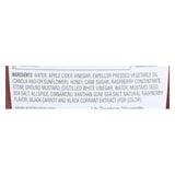 ingredients : water;apple cider vinegar;expeller pressed vegetable oil;canola and/or sunflower;honey;cane sugar;raspberry concentrate;stone ground mustard;distilled white vinegar;mustard seed;sea salt;allspice;cinnamon;xanthan gum;natural raspberry flavor;black carrot and black currant extract;for color