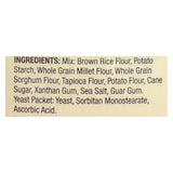 ingredients : mix: brown rice flour;potato starch;whole grain millet flour;whole grain sorghum flour;tapioca flour;potato flour;cane sugar;xanthan gum;sea salt;guar gum. Yeast packet: yeast;sorbitan monostearate;ascorbic acid