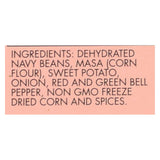 ingredients : dehydrated navy beans;masa;corn flour;sweet potato;onion;red and green bell pepper;non gmo freeze dried corn and spices
