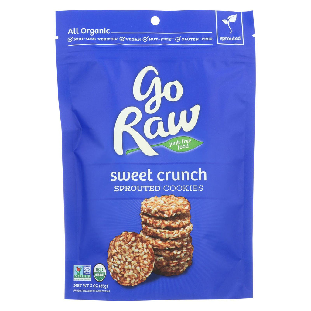Go raw sprouted cookies, sweet crunch is a healthy, natural and convenient snack option. Made with natural ingredients, these snacks are free of unnatural and unnecessary additives. This product is gluten-free, vegan friendly and organic. Each bag of go raw sprouted cookies, sweet crunch weighs 3 oz. With three servings per bag with 160 calories per serving.