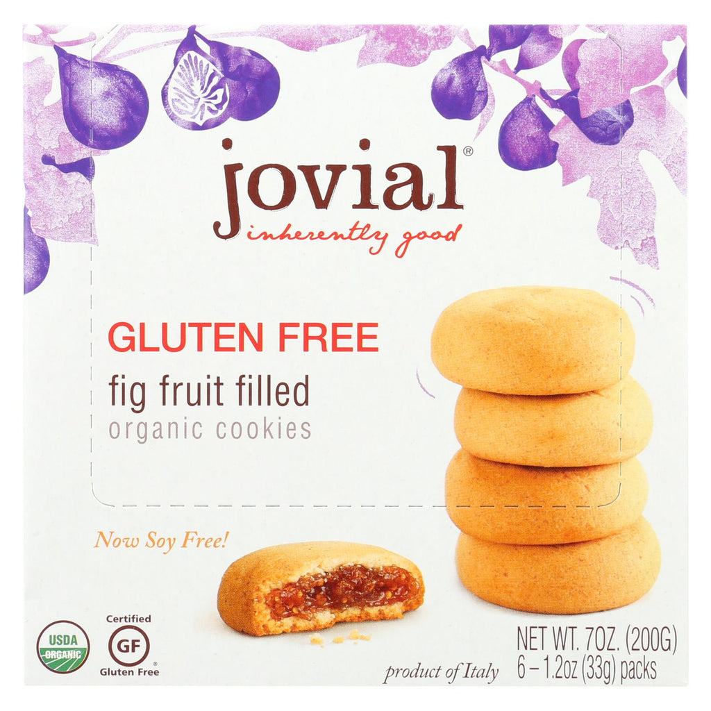 Jovial fig fruit filled cookies are baked in small batches by artisan bakers. Our certified gluten-free cookies are soft on the outside with a chewy fig filling. Our cookies are certified usda organic and made with responsibly-sourced palm oil. Each 7 oz. Box of cookies contains six packs of two cookies.