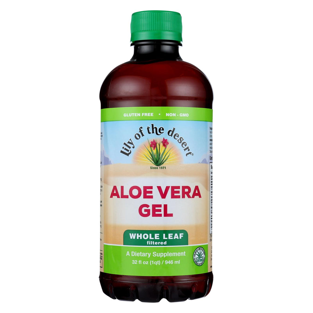 Lily of the desert whole leaf aloe vera gel is a dietary supplement made with all organic and natural ingredients including 99% aloe vera juice, carrageenan and citric acid. One 32 oz. Bottle of aloe vera gel is kosher and contains 35 mg. Of calcium per serving to help support a healthy immune system and digestive regularity.