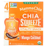 Mamma chia squeeze mango coconut is a quick, easy and delicious way to supplement your health and promote a balanced diet. Made with organic chia seeds and other natural ingredients, mamma chia squeeze mango coconut is free from unnatural and unnecessary additives, allowing the natural fruit flavors and nutritional value of the chia to remain uncompromised. This product is kosher. This four-pack of mamma chia squeeze mango coconut contains four 3.5 oz. Pouches with 70 calories per pouch. Refrigerate after opening. See nutrition facts panel for allergens.