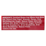 ingredients : certified gluten-free whole grain rolled oats;organic cane sugar;almonds;pecans;dried wild blueberries;sugar;natural flavor;citric acid;sunflower oil;dried cranberries;dried strawberries;dried raspberries;dried marion blackberries