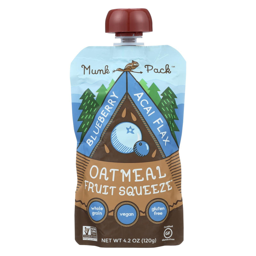 Munk pack blueberry acai flax oatmeal fruit squeeze is a delicious and healthy snack. Each 4.2 oz. Pouch contains the highest quality organic ingredients such as ground flax, blueberry, acai, apple and banana. We use only real fruit and fresh ingredients along with bpa-free packaging for a healthy and portable snack your child can enjoy anywhere.