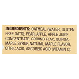 ingredients : oatmeal;water;gluten free oats;pear;apple;apple juice concentrate;ground flax;quinoa;maple syrup;natural maple flavor;citric acid;ascorbic acid;vitamin c