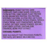 ingredients : peanut butter;dark chocolate chips;cane sugar;chocolate;cocoa butter;plant protein blend;brown rice protein;pea protein;vegetable glycerin;gluten free oat flour;dutch cocoa powder;potato starch;tapioca starch;prune juice concentrate;natural flavors;oat fiber;baking powder;sea salt;sunflower lecithin;xanthan gum;cinnamon;monk fruit extract