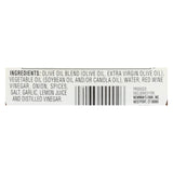 ingredients : olive oil blend;olive oil;extra virgin olive oil;vegetable oil;soybean oil and/or canola oil;water;red wine vinegar;onion;spices;salt;garlic;lemon juice and distilled vinegar