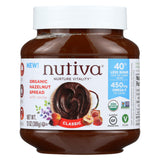 Nutiva organic hazelnut spread, classic with cocoa is great in dips and smoothies. This product is a creamy, organic spread that contains 450 mg. Omega-3 per serving. Nutiva organic hazelnut spread, classic with cocoa comes packaged in a recyclable jar and contains 13 oz. Of product. This product nurtures vitality with 40% less sugar.