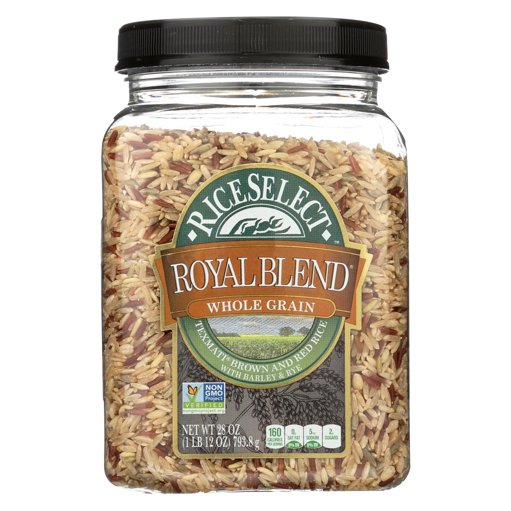 Rice select royal blend whole grain texmati brown and red rice contains a flavorful blend of four whole grains, texmati brown rice, thai red rice, barley and rye berries that are packed full of nutrition and taste. Cook this royal blend simply with water, butter and salt for a delicious side dish, or use its wholegrain goodness as a foundation for stir-fries or casseroles. This 28 oz. Jar makes 17 servings of royal blend texmati brown and red rice.