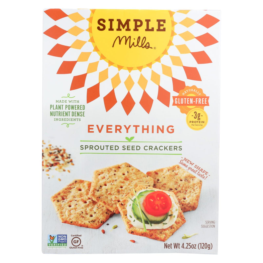 Simple mills everything sprouted seed crackers are made with plant powered, nutrient-dense ingredients like sunflower, flax and chia seeds. These are high in ala omega-3s and a good source of vitamin e and manganese. These paleo-friendly crackers are free from gluten, soy and dairy. Includes one 4.25 oz. Box of simple mills everything sprouted seed crackers. Simple mills enriches lives and bodies through simple, delicious, real food. We strive to make healthful choices easy by offering food that taste great in the moment and nourishes your body for the long-term. We believe in clean, nutritious food for a better life, it's that simple.
