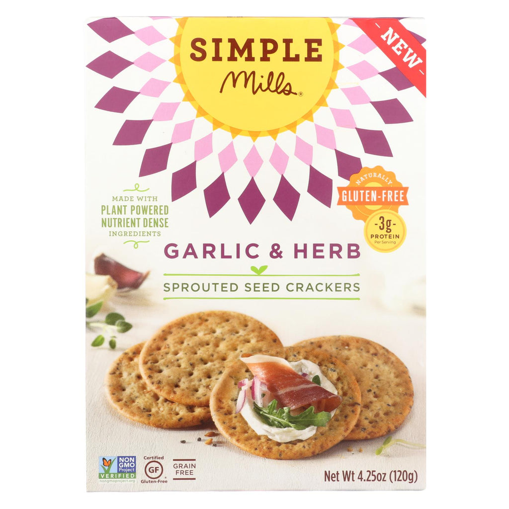 Simple mills garlic and herb sprouted seed crackers are made with plant powered, nutrient-dense ingredients like sunflower, flax and chia seeds. These are high in ala omega-3s and a good source of vitamin e and manganese. These paleo crackers are free from gluten, soy and dairy. Includes one 4.25 oz. Box of simple mills garlic and herb sprouted seed crackers. Simple mills enriches lives and bodies through simple, delicious, real food. We strive to make healthful choices easy by offering food that taste great in the moment and nourishes your body for the long-term. We believe in clean, nutritious food for a better life, it's that simple.