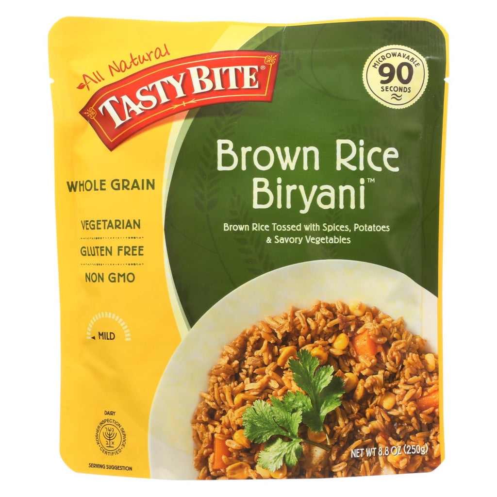 Tasty bite brown rice biryani is fast and easy to make, simply heat the pouch for 90 seconds in the microwave. One 8.8 oz. Pouch of tasty bite is made from all natural ingredients including whole grain brown rice tossed with spices, potatoes and fresh vegetables. Tasty bite uses ingredients grown by our community of local farmers and is vegetarian and gluten-free. Consult nutrition facts panel for allergens.