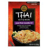 Thai kitchen pad thai noodle kit contains noodles, tomato, fish sauce, garlic chives, picked radish, soybean oil and tamarind paste. Each 9 oz. Package contains 3 servings providing 260 calories, 14 g. Of sugar, 1 g. Of dietary fiber and 4 g. Of protein. Our pad thai noodle kit is gluten-free. See nutrition facts panel for allergens.