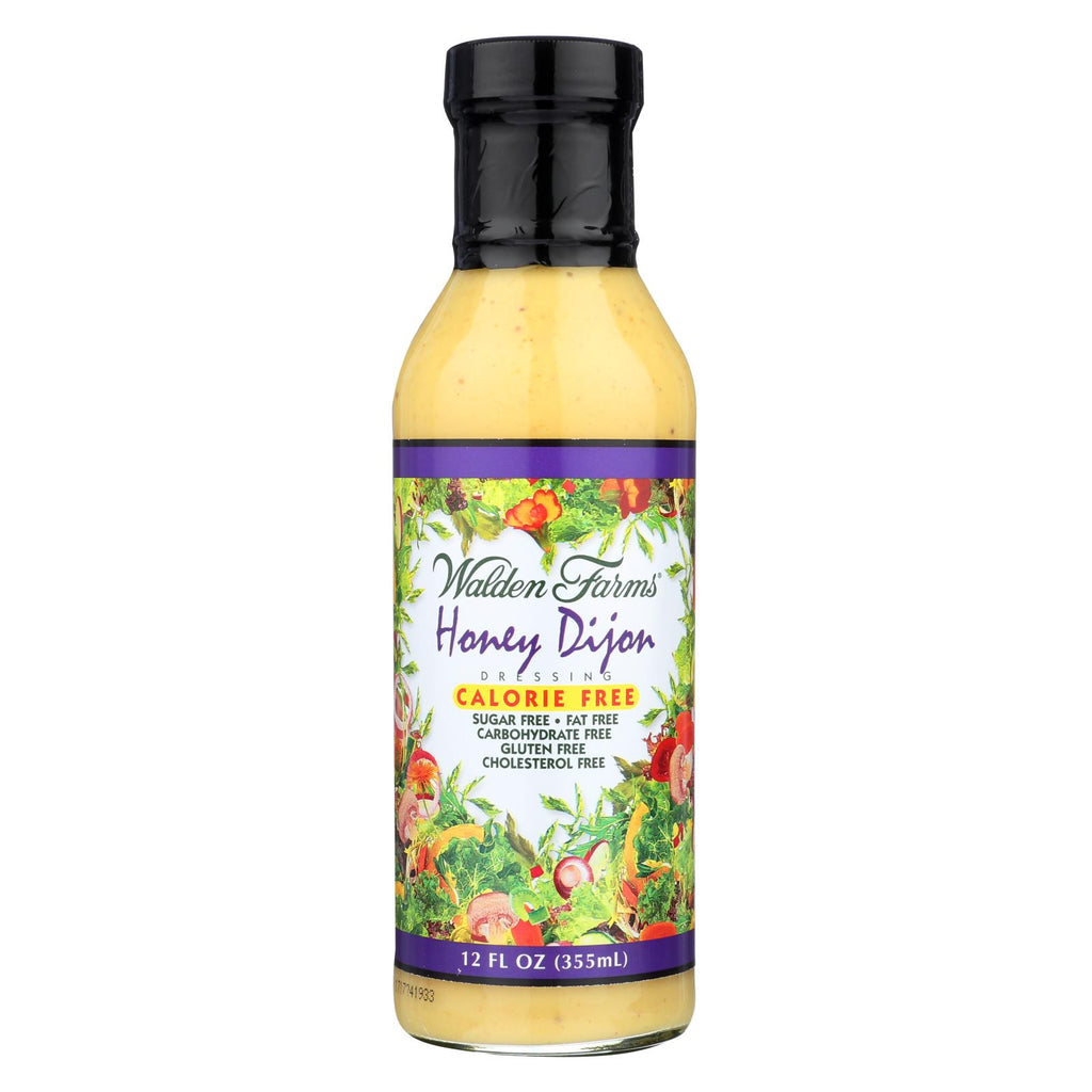 Walden farms honey dijon dressing is made from a blend of honey dijon mustard, apple cider vinegar and spices to create a delicious flavor that is the perfect topping for your favorite salads. Our dressing is free from sugar, calories and gluten, so you can pour it on generously without adding extra calories to your salad. This bottle contains 12 fl. Oz. Of honey dijon dressing.
