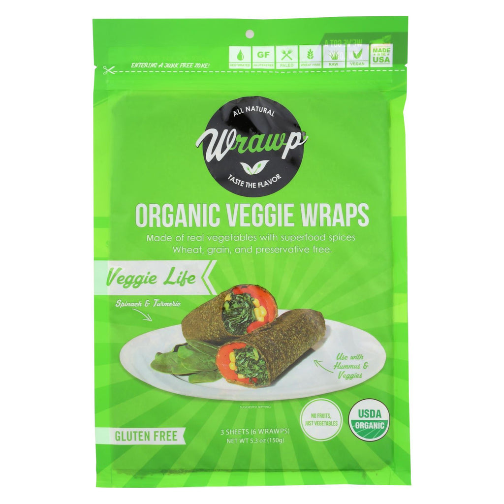 Wrawp veggie life organic veggie wraps are made with spinach, coconut, flax seeds, tumeric and black salt for simple, wholesome, all-natural flavor. These wraps are dehydrated to preserve the vitamins, minerals and enzymes in these ingredients. Sprinkle water on these wraps or warm them to soften. Fill wraps with your favorite vegetables for a delicious, healthy breakfast, lunch or snack. Each six count package contains three sheets with two veggie wraps per sheet.