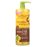 Alba botanica hawaiian shampoo, drink it up coconut milk is a specially formulated product designed to provide strength and beauty to each strand of hair. You'll find no damaging sulfates or drying formaldehydes in here. This shampoo is enriched with botanicals and real coconut milk. What doesn't it contain? artificial colors, parabens, phthalates, and of course no harsh salts. Get velvety soft, healthy hair with this refreshing cleanser for parched, thirsty tresses. Additional ingredients to help your hair are fatty acids, protein, calendula and tropical extracts that will bring your hair through heat styling without a hitch. The coconut milk will lock in all that moisture your hair has been craving, and will help reduce split ends. This formula is great for children's hair too. 100% vegetarian ingredients assure you a gentle product that will aid in keeping your hair vibrant week after week. Each bottle of drink it up contains 946 ml. Or 32 fl. Oz. Of shampoo.
